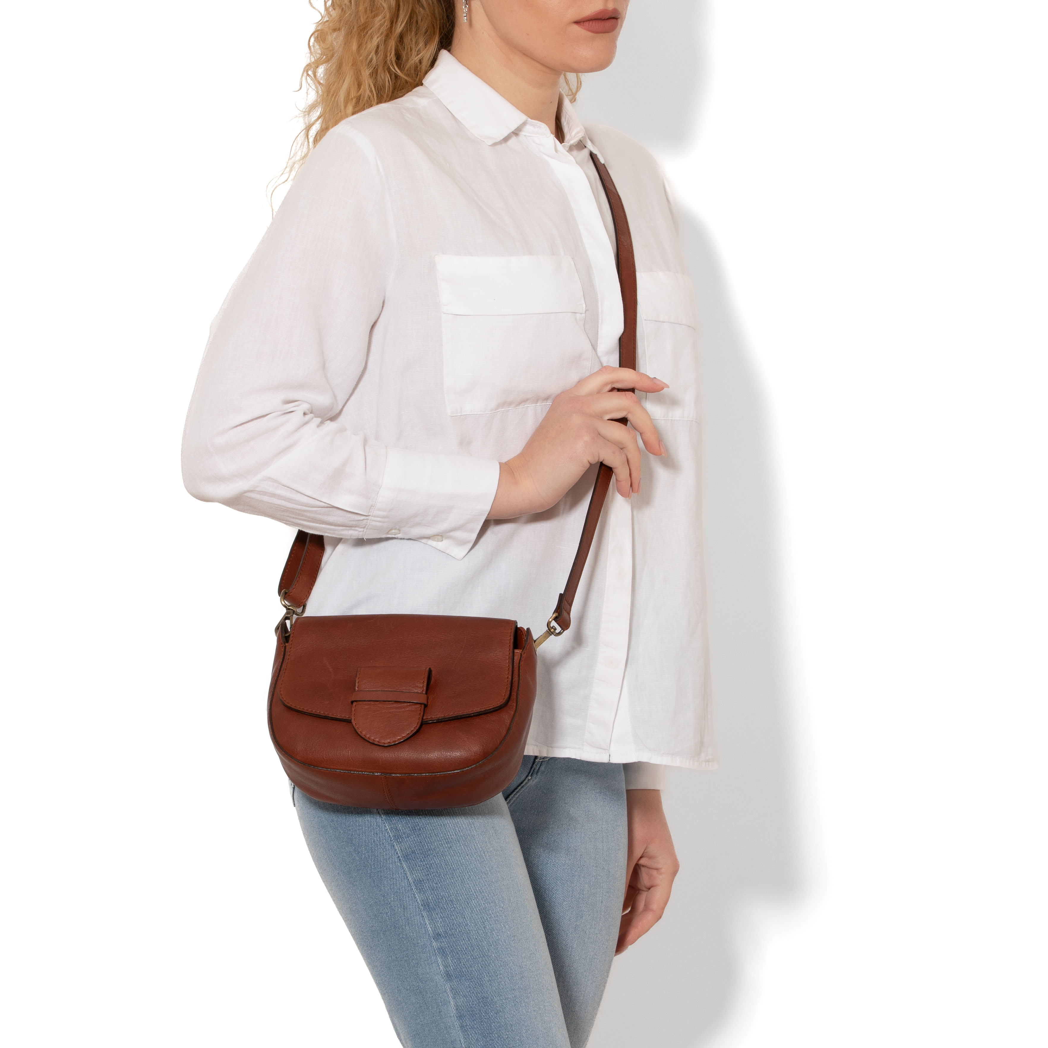 Small crossbody bag in soft cow leather, with an iconic and light saddle shape.