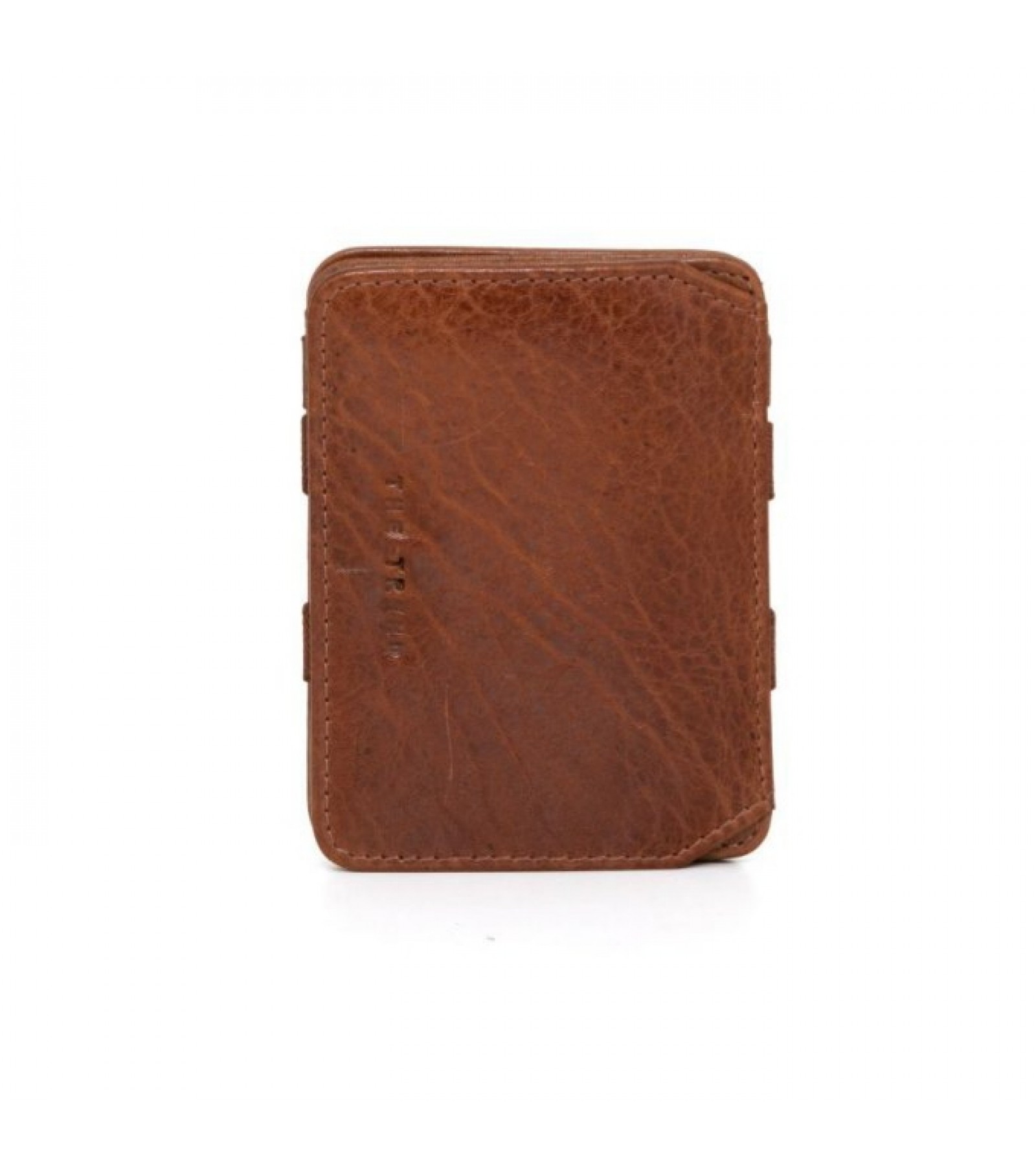 A small vertical casual wallet for cards and notes with elastic bands that secure the notes