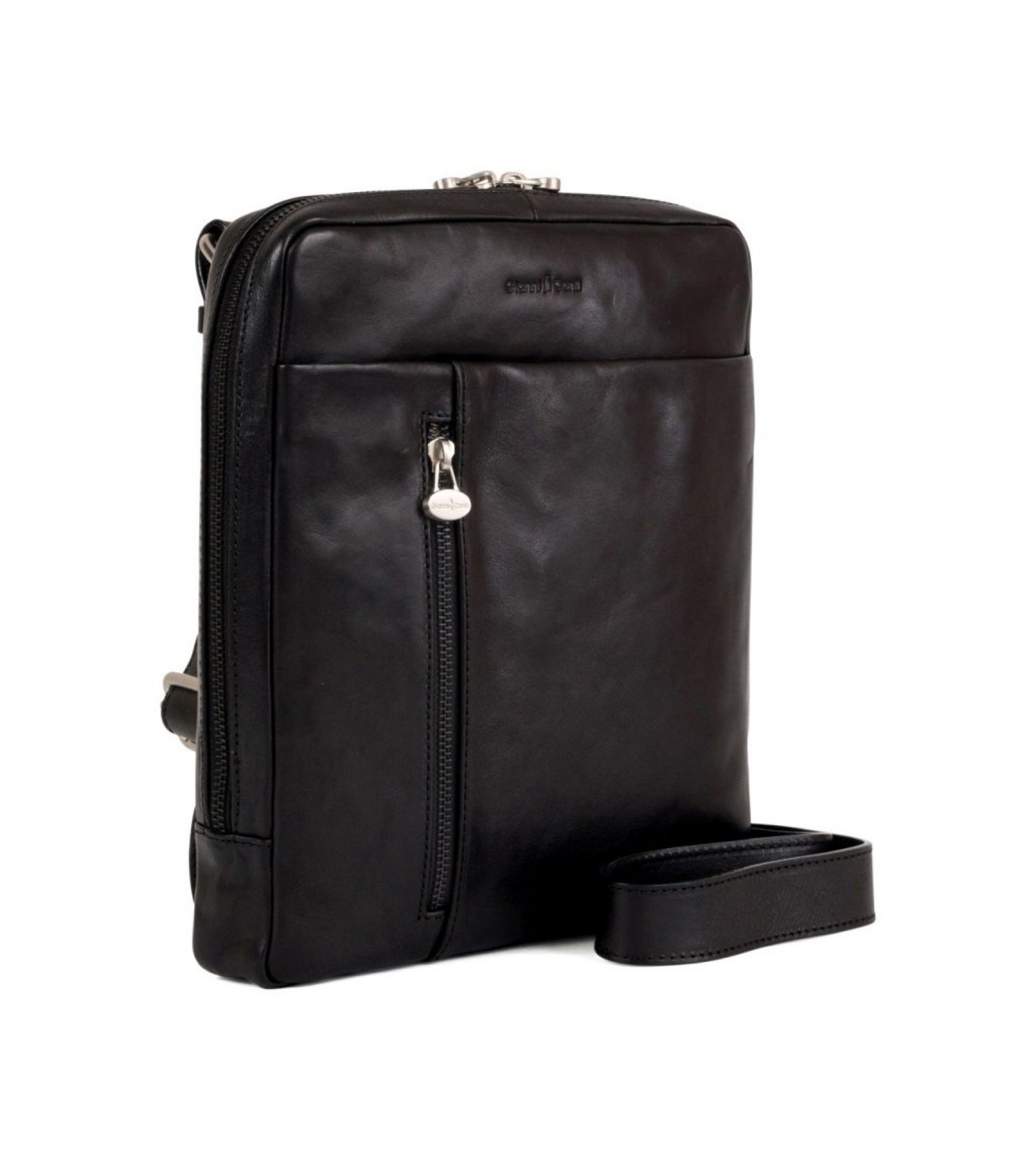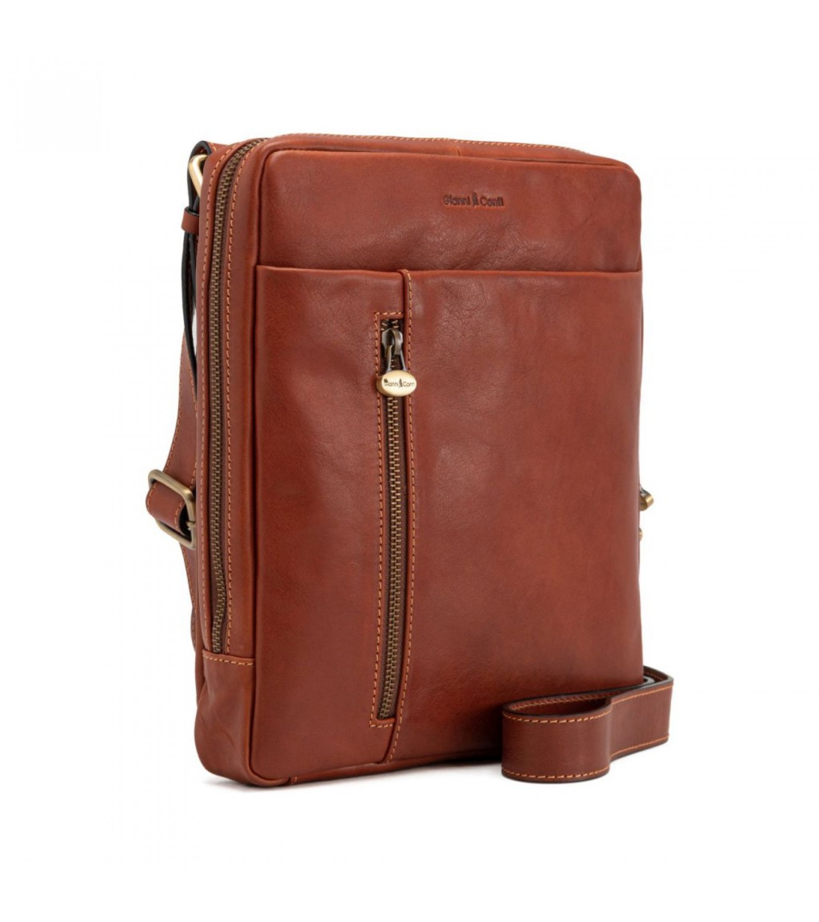 On the back a full width zipped pocket. Fully lined in cotton jacquard cloth with gold coloured ‘Gianni Conti’ logo hardware and ‘Gianni Conti’ logo delicately imprinted on the front of the bag. Fully adjustable leather shoulder strap 172 cm approx. at maximum extension.