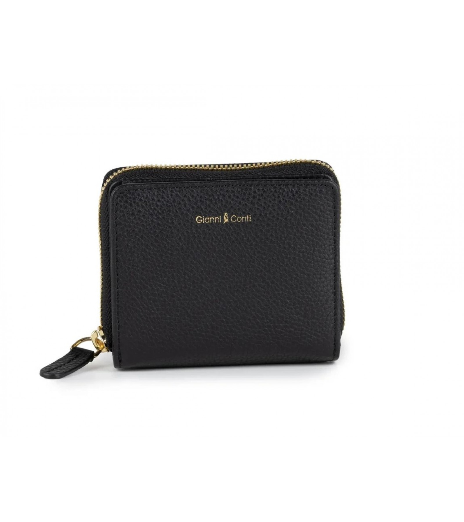 Compact small purse with internal pocket for banknotes and side compartment for credit cards. Zip around compartment for coins